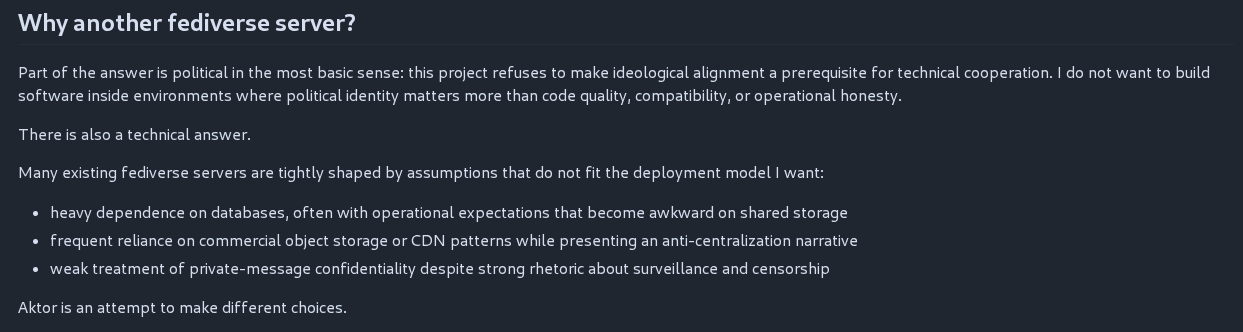 But the problem is not the technical choice. The problem is the message. The problem is that behind all the “fediverse” and its rhetoric of “we are the good ones, they are the bad ones,” there is in reality a system of gatekeeping that instills in people a false sense of security and freedom, and convinces them that they are fighting a system with which, in practice, they are willingly collaborating, without even realizing it. Or perhaps they do.